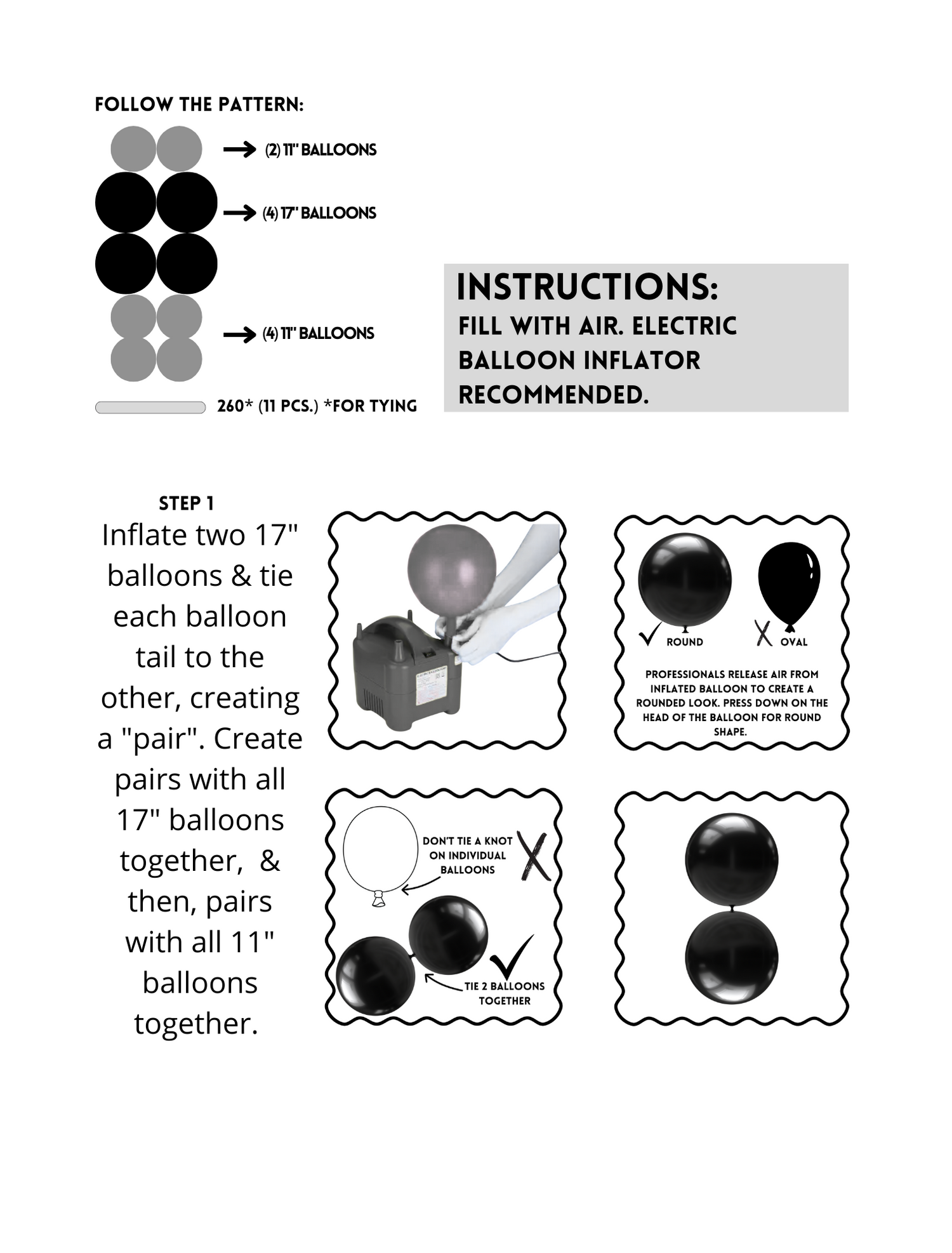 Step-by-step written instructions to help you build a balloon garland or cluster. Click the pink button below to open your manual.